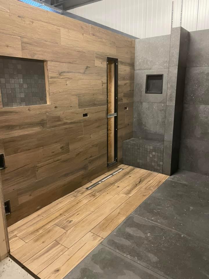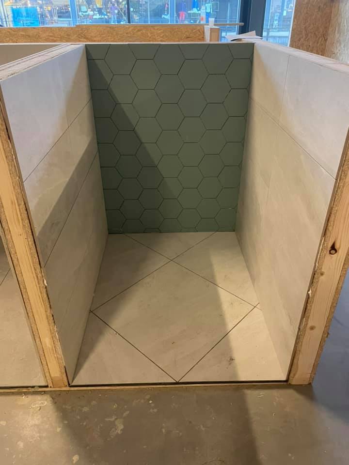 Voor de showroom van Sanitairkamer in Harderwijk hebben wij alle demo opstellen betegeld, onderstaand tref je een selectie aan van de werkzaamheden.